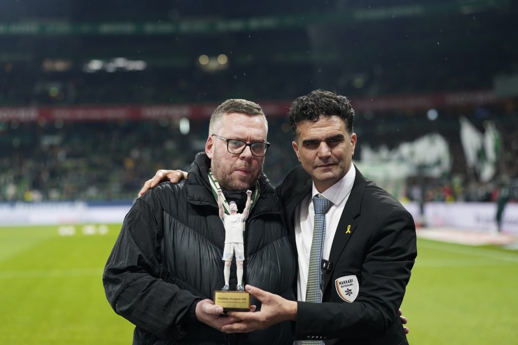 Am Samstag, den 17. Januar 2026, wurde im Weserstadion der Makkabäer-Ehrenpreis 2026 im Rahmen des Bundesliga-Spiels zwischen Werder Bremen und Eintracht Frankfurt verliehen. Alon Meyer, Präsident von MAKKABI Deutschland und Makkabi Frankfurt, überreichte die Auszeichnung gemeinsam mit Dr. Hubertus Hess-Grunewald, Präsident des SV Werder Bremen, an den Freundeskreis Hersh Goldberg-Polin. Ausgezeichnet wurde ein Engagement aus […]