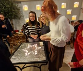Zum weiteren Programm gehörten das traditionelle Kerzenzünden mit Ludmilla Movshyn, der Kiddush durch Alon Meyer, ein gemeinsames Shabbat-Essen begleitet von traditionellem Gesang sowie ein interaktives Quiz des Teams von Zusammen1 von MAKKABI Deutschland zu Aspekten jüdischen Lebens in Deutschland.