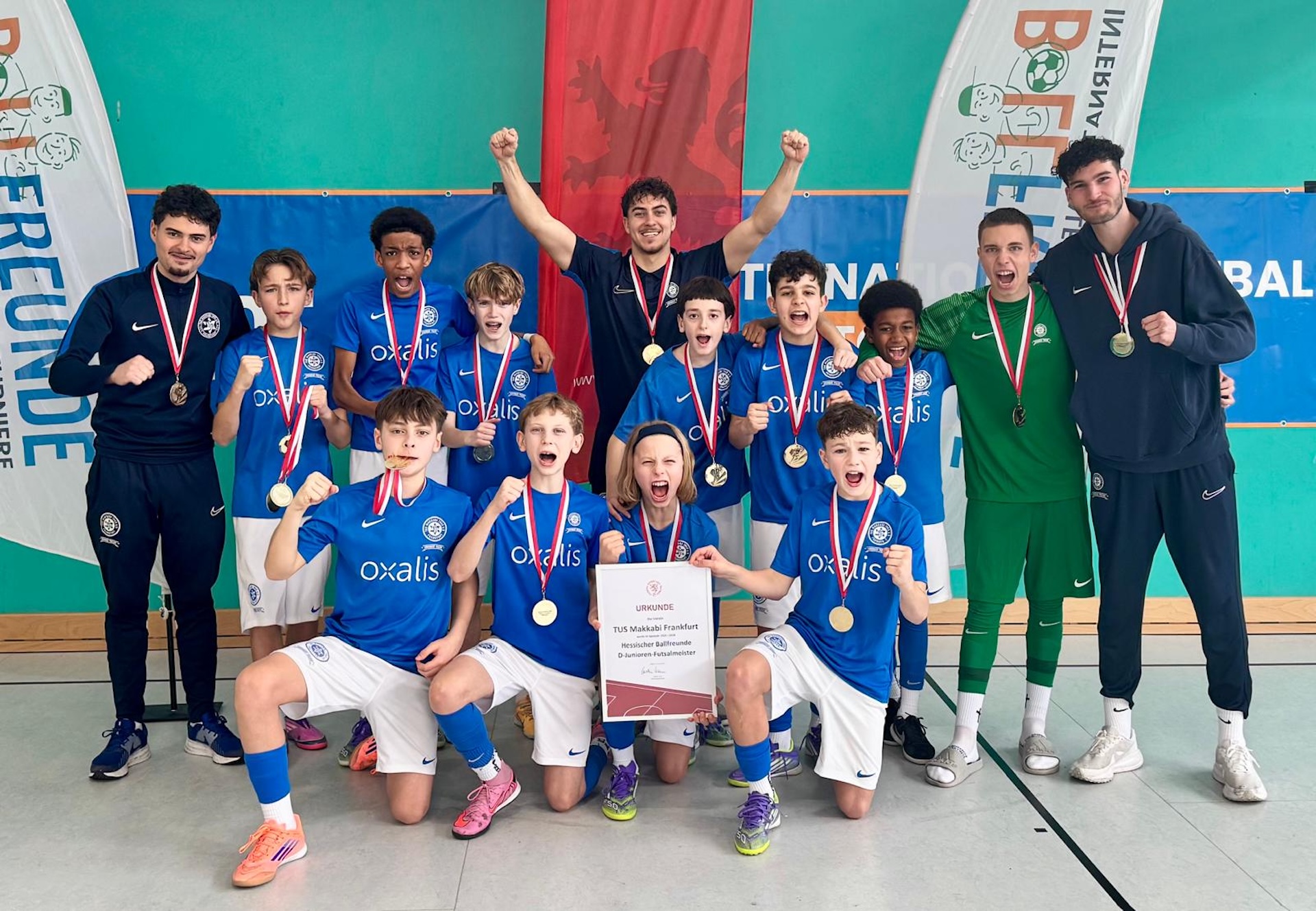 Am 28. Februar 2026 setzte sich unser Team in Langgöns gegen die besten Mannschaften des Bundeslandes durch und sicherte sich verdient den Titel. In einem hochklassig besetzten Turnier bewiesen unsere Makkabäer nicht nur spielerische Qualität, sondern auch großen Teamgeist, Mentalität und Nervenstärke.