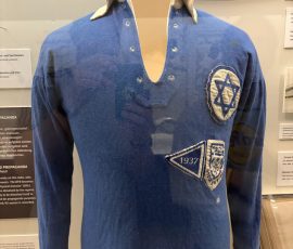Besonders eindrucksvoll für die jungen Makkabäer war jedoch die eigene Vereinsgeschichte: Zu sehen war unter anderem der Wimpel des ersten Spiels eines jüdischen Clubs im DFB-Pokal – TuS Makkabi Berlin gegen den VfL Wolfsburg im Jahr 2023. Ein weiteres Highlight war das Originaltrikot von Max Girgulski.