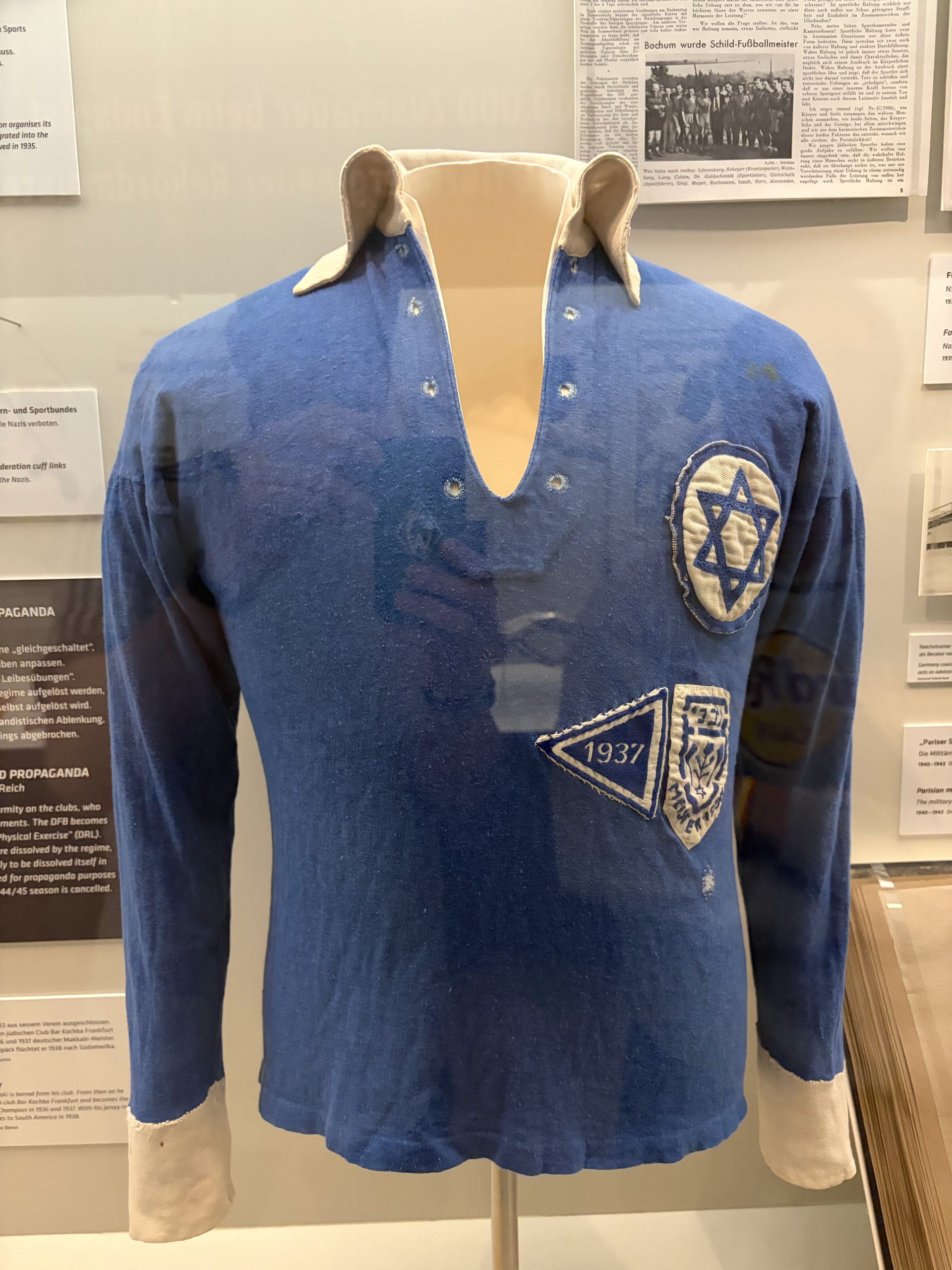 Besonders eindrucksvoll für die jungen Makkabäer war jedoch die eigene Vereinsgeschichte: Zu sehen war unter anderem der Wimpel des ersten Spiels eines jüdischen Clubs im DFB-Pokal – TuS Makkabi Berlin gegen den VfL Wolfsburg im Jahr 2023. Ein weiteres Highlight war das Originaltrikot von Max Girgulski.